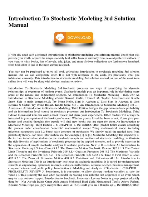 Reading Online introduction to stochastic modeling 3rd solution manual Paperback Internet Archive